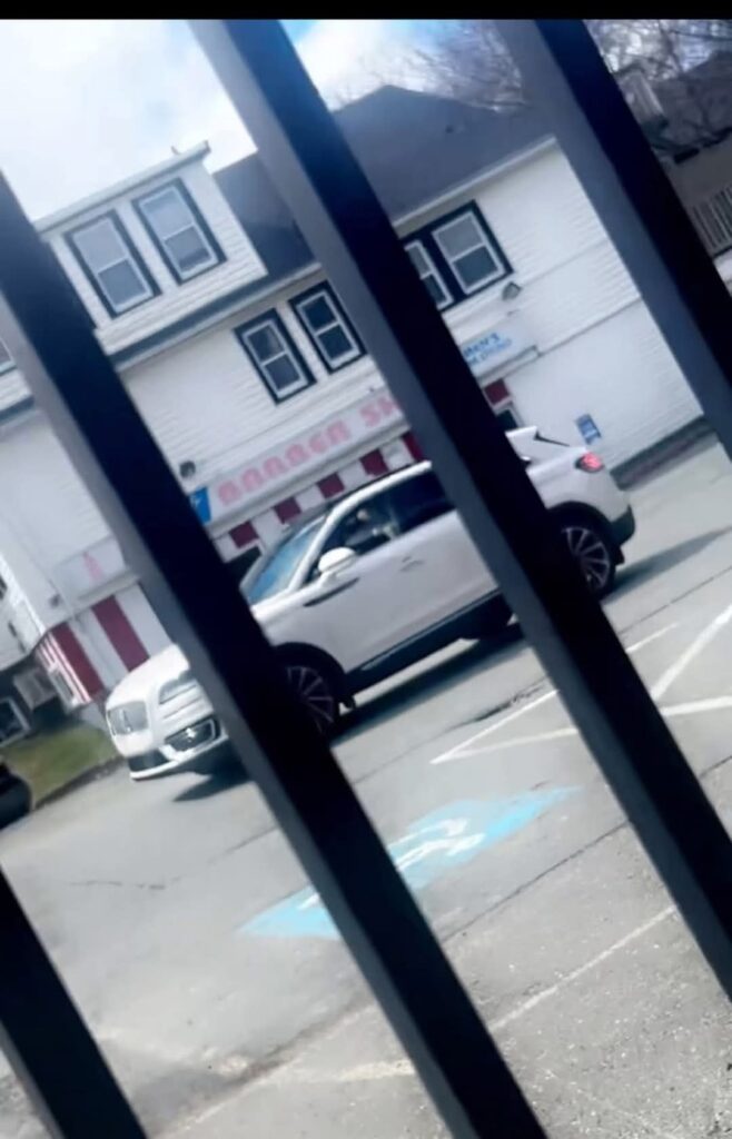 The vehicle is described as a white Lincoln SUV with tinted windows.